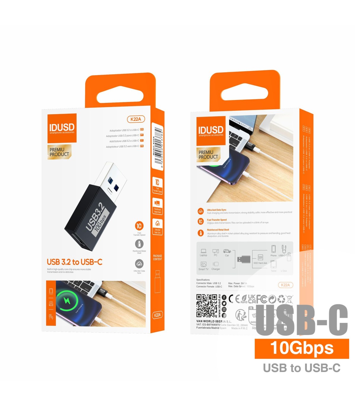 Adaptador USB-C a USB 3.2 M/H K22A – Alta Velocidad, Carga Eficiente y Compatibilidad Universal