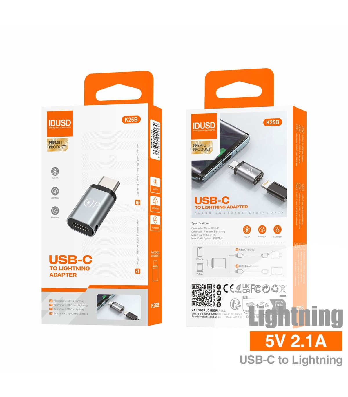 Adaptador USB-C a Lightning M/H K25B – Carga Rápida, Transferencia de Datos Eficiente y Compatibilidad Universal para Dispositivos Apple