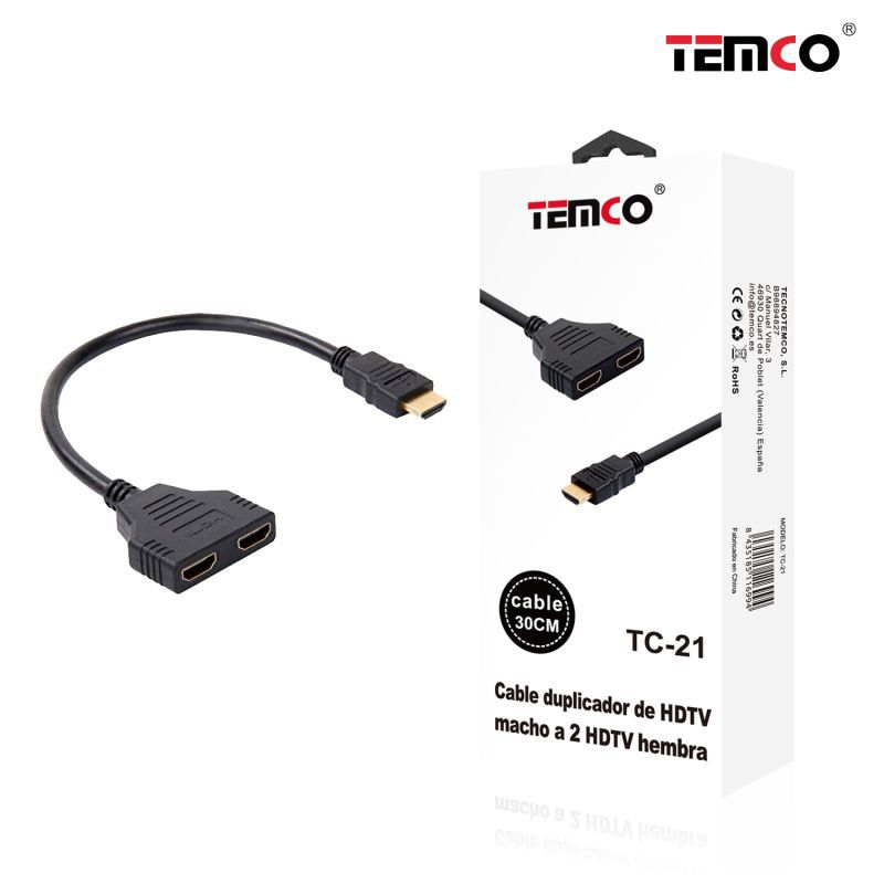 Cable Adaptador HDMI Macho- 2 HDMI Hembra de alta calidad. Diseño con conectores bañados en oro para una transmisión de calidad superior y sin distorsión. Mediante este cable podrá conectar varios dispositivos que emiten imagen/vídeo. Compatible con smartTV, ordenador, portátil, DVD, monitor, proyectores, videoconsolas, etc. Con este cable de audio podrá conectar de manera ilimitada sus dispositivos.