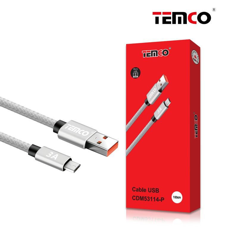 Cable Trans. Micro USB 5P 3A 1m Plateado