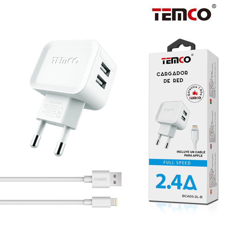Pack Cargador 2.4A + Lightning 2A 1m Blanco