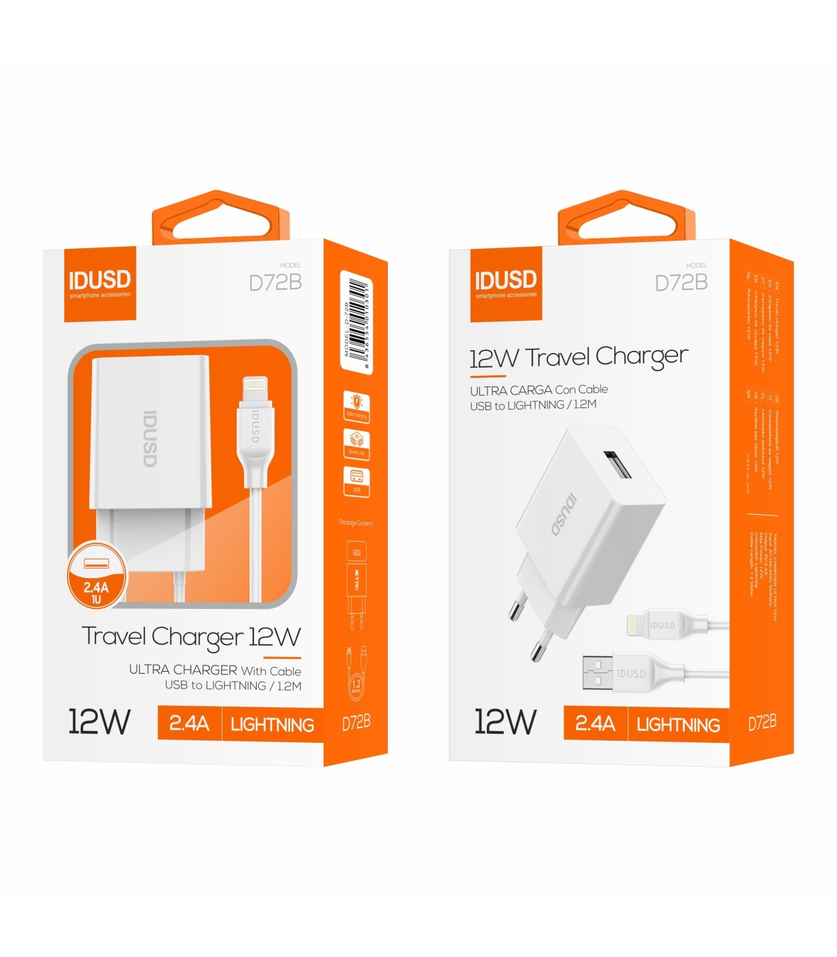 Smart Charger 2.4A + Cable Lightning 1.2M – Carga Rápida y Segura